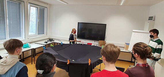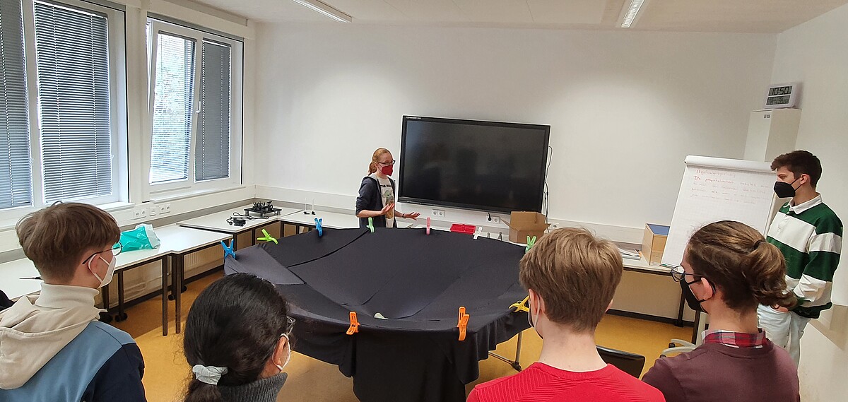 Die Schülerinnen und Schüler lernen interessante wissenschaftliche Themen kennen: von schwarzen Löchern und die Entstehung von Gravitationswellen bis hin zur Bedeutung von Interferometern für den Nachweis von Gravitationswellen.